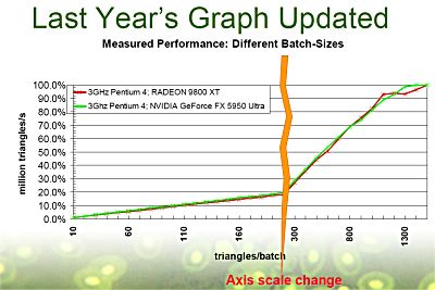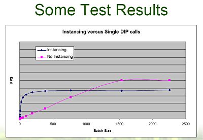 Das Problem: Je weniger Vertexdaten mir pro DirectX API-Aufruf and die Grafikkarte gesendet werden, umso größer die CPU Abhängigkeit einer Anwendung, denn API-Aufrufe werden von der CPU bearbeitet, Vertexdaten von der VPU.